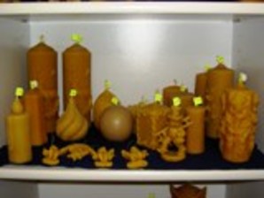 Die Kerzen werden aus 100% Bienenwachs hergestellt. Die Geschenkartikel sind aus speziellem Hartwachs gegossen anschliessend mit feinem Metallpulver bemalt anschliessend lackiert.